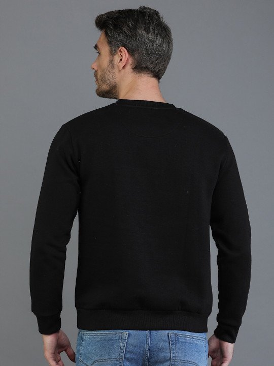 Men Black Printed Round Neck Fleece Sweatshirt
